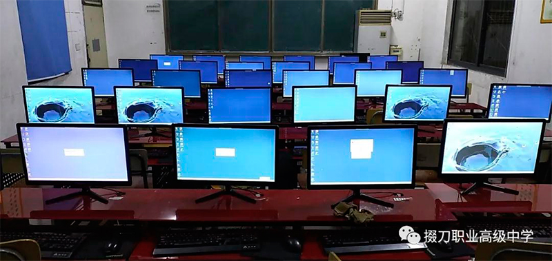 为了学生们今天能顺利报名,专业老师昨晚连夜完成了机房的调试工作。