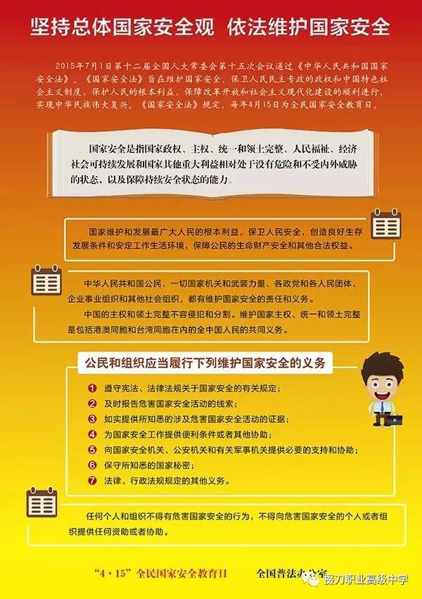 4月15日是国家安全教育日。为了提高全民安全教育素质, 掇刀职业高级中学积极组织学生,开展了网上学习国家安全有关法律法规活动。全校师生积极参与,认真学习,增强了国家安全责任感与使命感,明确了自觉履行、维护国家安全的责任和义务。